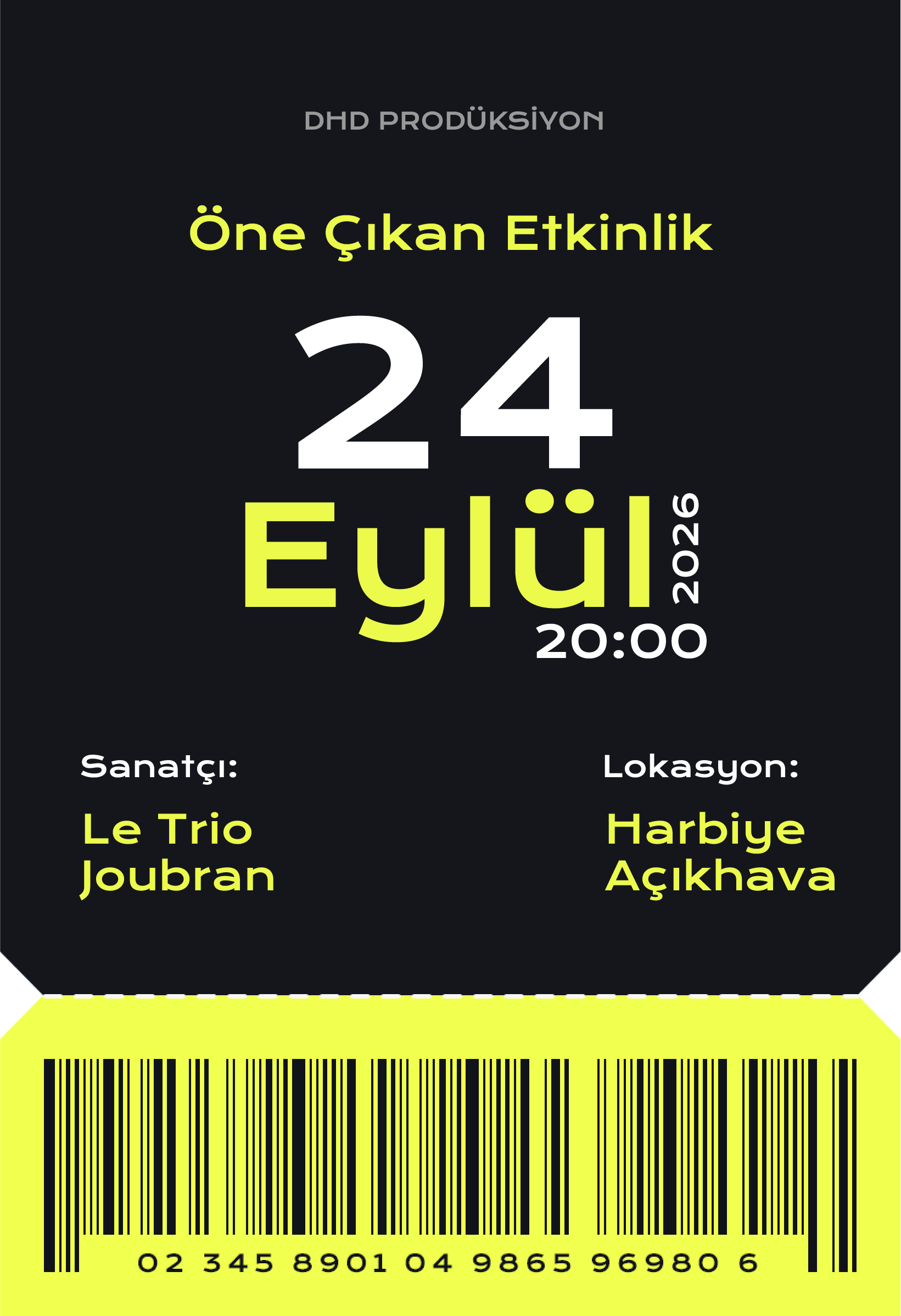 DHD Prodüksiyon; konser, festival ve özel etkinliklerde güçlü sahne kurgusu, teknik altyapı ve etkileyici deneyim anlayışıyla projeler üretir. Her etkinlik; detaylı planlama, doğru ekip ve yüksek prodüksiyon kalitesiyle hayata geçirilir.